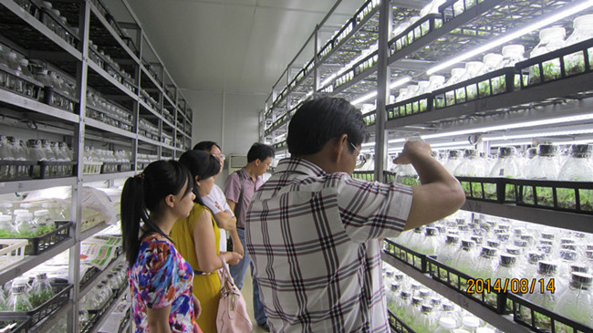 在广州市果树科学研究所、福建省泉州市泉美生物科技有限公司、福建省漳州市职业技术学院等进行了广泛,与对方的管理层、研发人员深入开展了交流,在植物组织培养技术与种苗等方面寻找达成了初步的合作意向。在广西药用植物研究所针对黎药牛耳枫的快繁技术研发和市场推广价值等方面与对方深入探讨。此次考察调研,为中心制定改革发展规划新的理念。