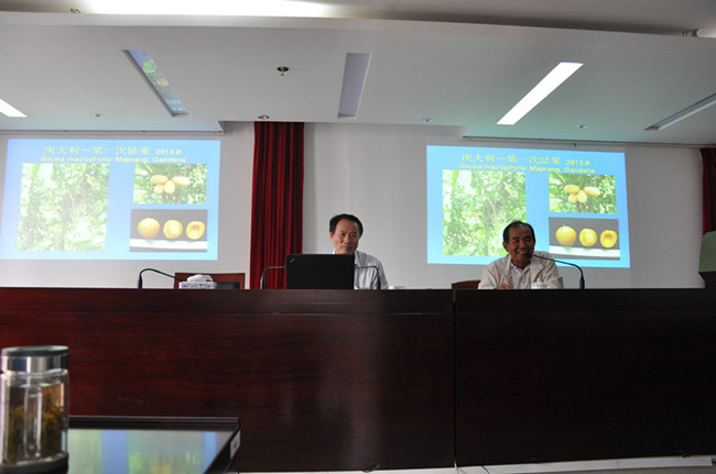 受我站马蔚红副站长邀请,台湾国立屏东科技大学副校长颜昌瑞教授、柯立祥教授等一行6人于11月14日到我站进行学术交流。颜昌瑞教授为我站科研人员做了题为“台湾热带果树产业与科研情况”的学术报告。报告从品种选育、栽培技术、栽培区域、存在的问题等4个方面详细介绍了芒果、香蕉、莲雾等20余种热带果树在台湾的生产现状与研究情况。会后,我站科研人员就热带果树育种、栽培、病虫害综合防控与采后贮运保鲜等问题与颜昌瑞教授、柯立祥教授进行深入交流与讨论,与会的科研人员受益匪浅。