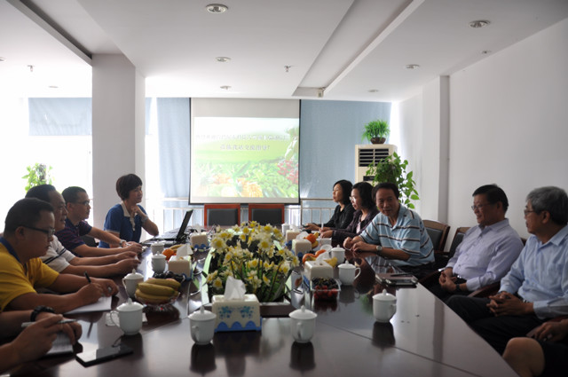2016年5月23日,应我站邀请,台湾屏东科技大学颜昌瑞副校长、高雄农业改良场蔡承良原场长、邱祝樱研究员、李雪如研究员等一行6人到访我站开展合作交流。会议由王必尊副站长主持,各研究室主任及优稀果树课题组科研人员参加了座谈会。