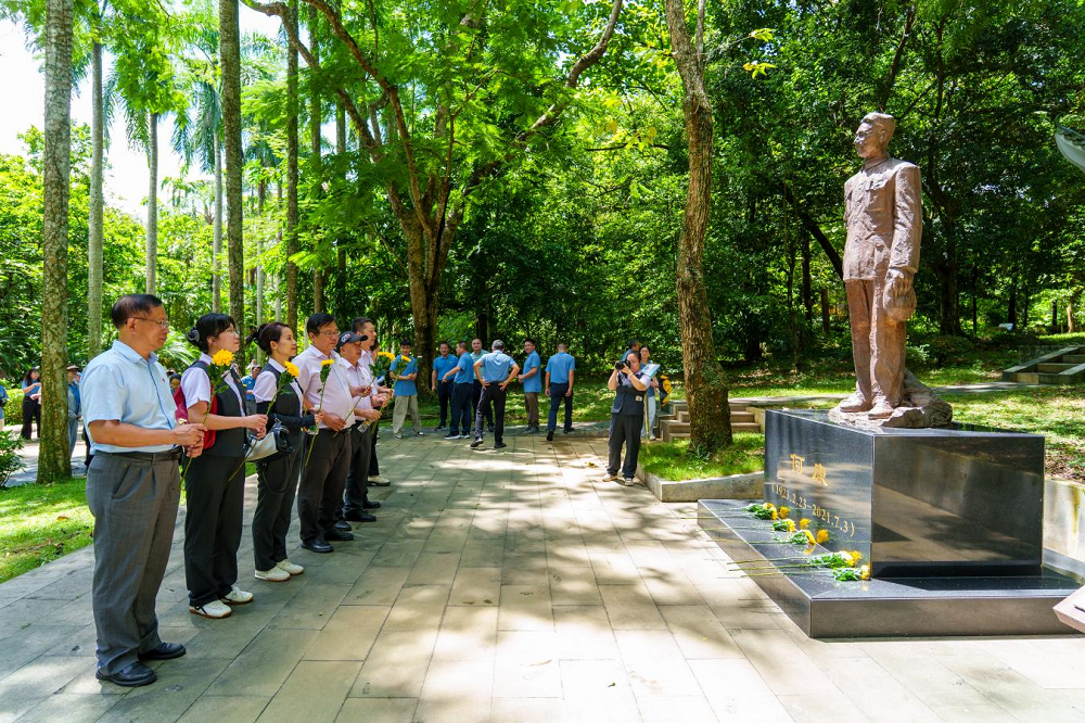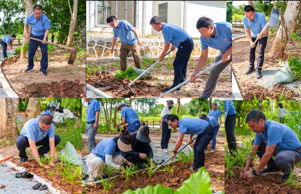 在历史底蕴深厚的中国热带农业科研事业的主要发源地——联昌试验站旧址,通过参观珍贵实物、历史图片和老同志的专题党课,深刻感悟老一辈科技工作者“无私奉献、艰苦奋斗、团结协作、勇于创新”的热科院精神,见证老一辈农业科学家在艰苦条件下扎根热土、矢志报国的奋斗历程。在何康老院长雕像前深切缅怀其为我国热带农业现代化发展作出的卓越贡献,他的崇高品格和毕生奉献,进一步激发了全体党员投身发展热带特色高效农业事业的责任感与使命感。在儋州热带农业科技产业园,同志们深入了解了现代热带农业科技的产业化应用,发扬艰苦奋斗精神,在园内道路两旁亲手种植斑斓等植物,以实际行动践行“绿水青山就是金山银山”发展理念。